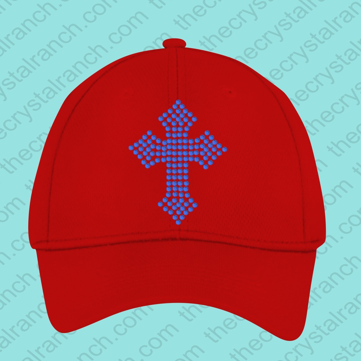 Guadalupe Cross in Fuscia Swarovski Crystals on your choice of cap.